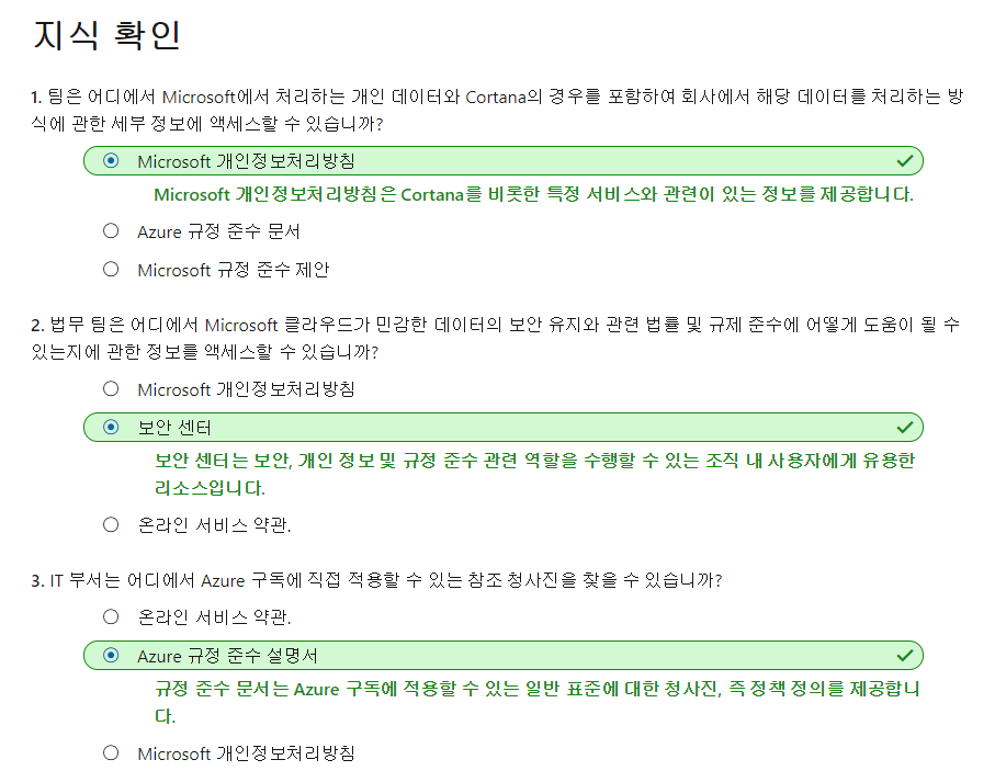3. Azure의 개인 정보, 규정 준수 및 데이터 보호 표준 검사