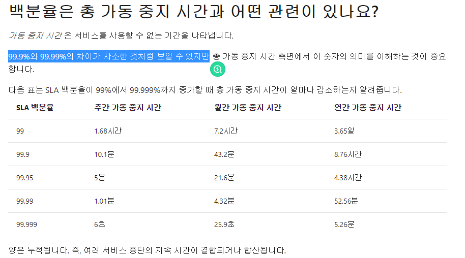 - 99.99%가 넘는 고성능은 달성하기 어려움 (99.99% 는 가동중지시간이 1분)
