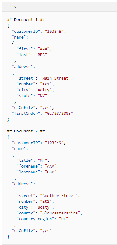 - 예를 들어, 문서 DB에서 각 고객의 세부 정보를 단일 문서로 저장할 수 있습니다.