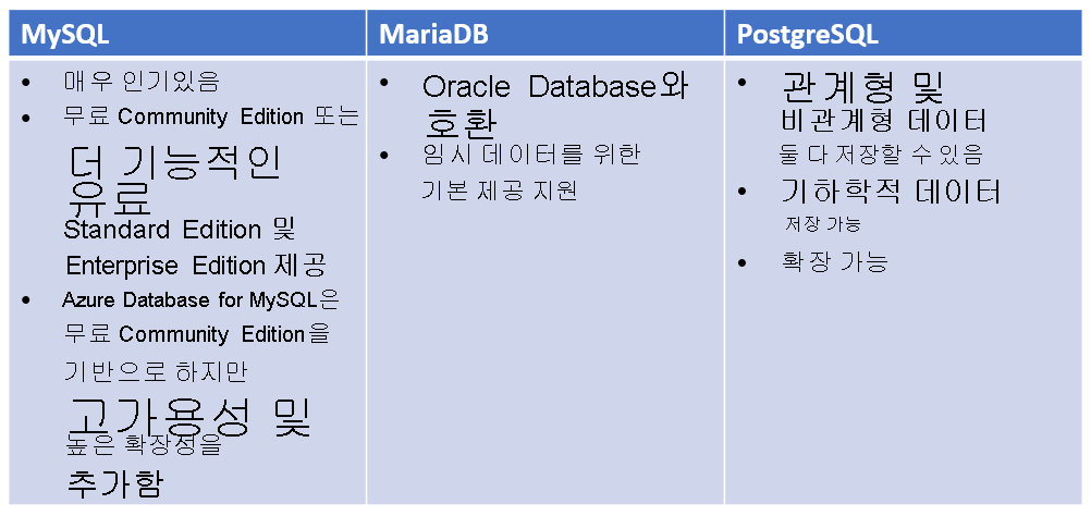 - Azure에서 관계형 데이터로 작업하는 방법 설명 (25-30%)