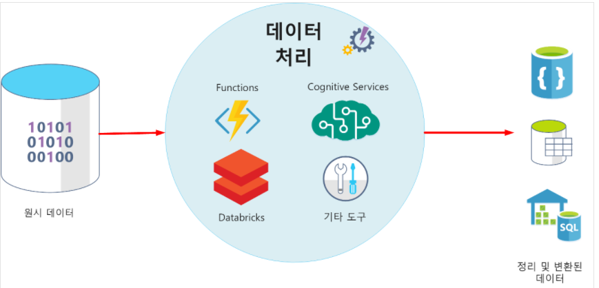 - 데이터 레이크 스토리지 -> 다른 데이터 형태로 변환 (Azure Databricks)