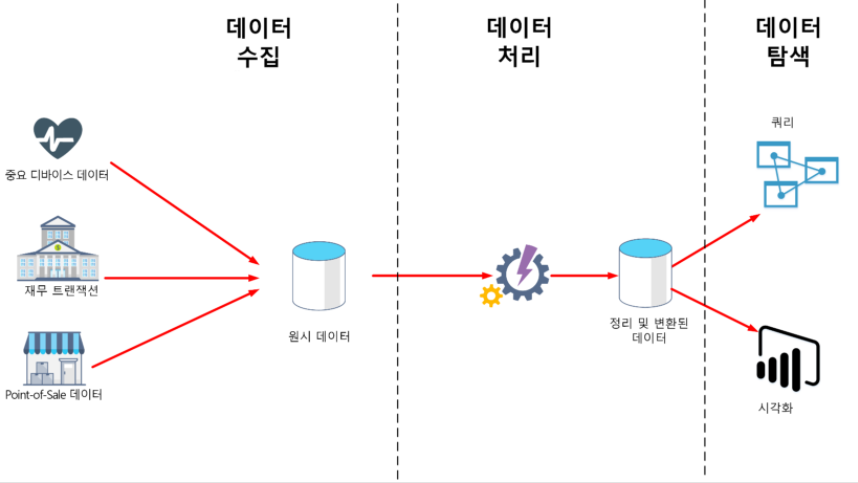 - 데이터 레이크 스토리지 -> 정규화 된 형식으로 변환 (Azure Synapse)