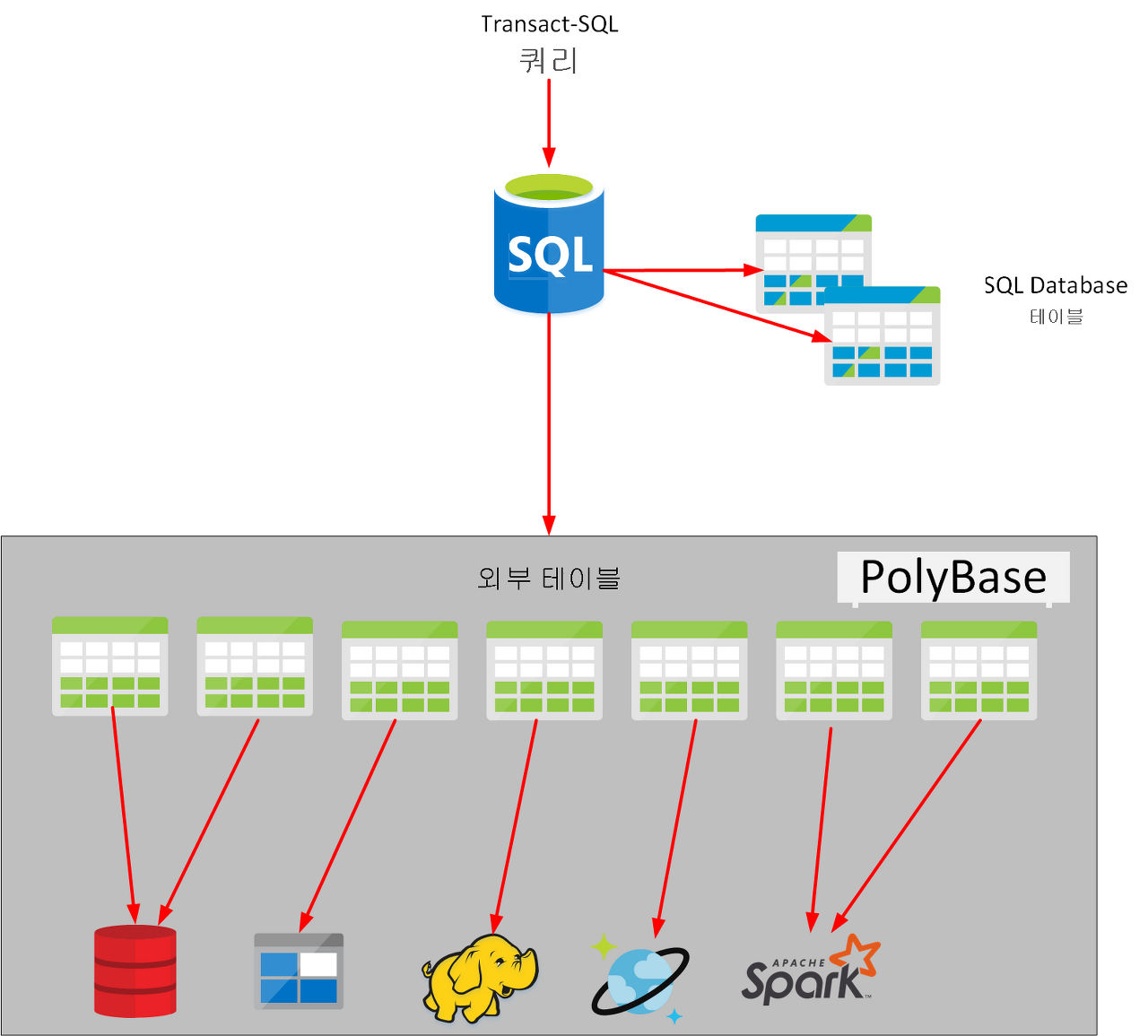 - Polybase를 사용하면 데이터가 SQL DB의 테이블 처럼 표시 됩니다