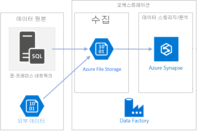 - 데이터 팩토리 -> 데이터 레이크 스토리지