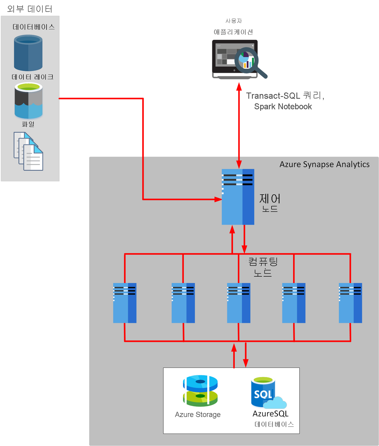 - Azure Synapse Analytics는 클러스터형 아키텍처를 사용합니다.