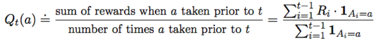 이 수식은 "내가 선택해서 받은 보상 / 선택한 횟수 " 를 의미한다. (왜냐면 레버를 당길지 말지 두가지 선택 밖에 없기 때문이다)