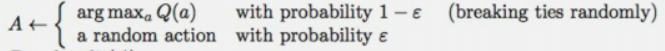 A <- (1-e)의 확률로 argmax Q(a) // greedy