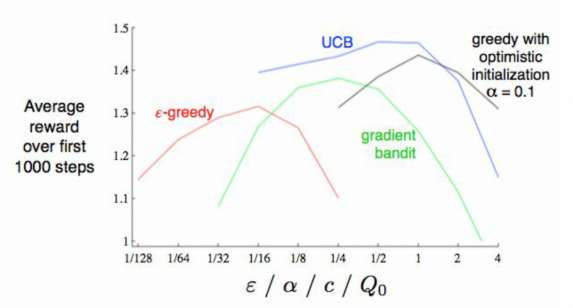 이 결과 UCB가 가장 좋은 퍼포먼스를 보이고, 실제로는 e-greedy와 UCB를 가장 많이 사용하고 있다.